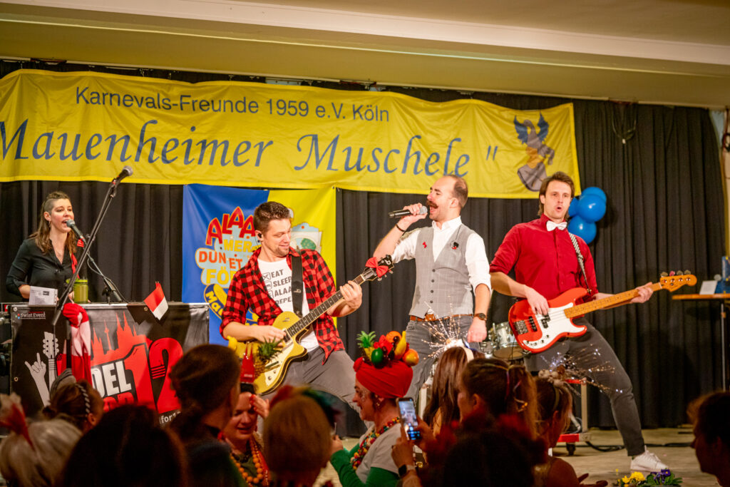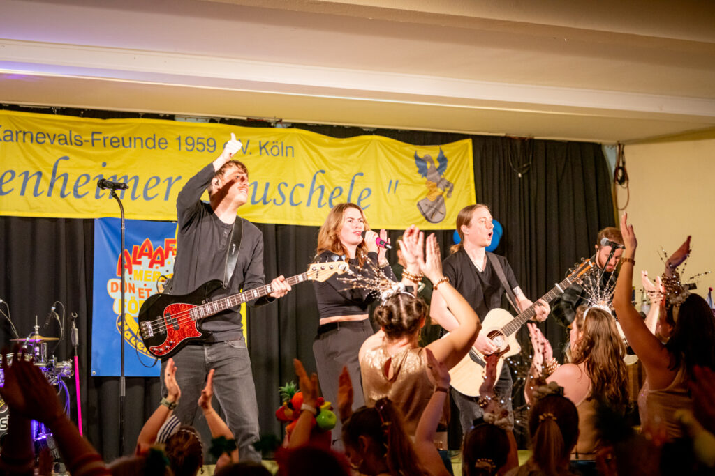 Die Karnevalsklassiker und der Kölsch-Rock der Band „Veedel vor 12“ nahmen die tolle Stimmung auf, und die Damen gaben erneut alles. Besonders bewegend war die Version des „Kölsche Jung“, gesungen von der Keyboarderin Anna Mainzer, die den Mauenheimer Damen einen besonderen Gänsehautmoment bescherte.