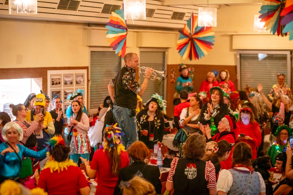 Marcus Rey, ein Urgestein des Mauenheimer Karnevals, nahm nicht nur die Bühne, sondern auch den Saal ein. Bei der großartigen Stimmung hält es Marcus nie lange auf der Bühne. Lieber heizt er mitten im Saal, auf einem Tisch stehend, den Damen mit seinen Trompetensoli kräftig ein. Am Ende seines großartigen Auftritts gab es jedoch einen Wermutstropfen: Marcus Rey beendet seine Karriere mit dieser Session. Gemeinsam mit ihm rockten die Mauenheimer Damen die Bühne bei seinen letzten Zugaben und verabschiedeten sich gebührend von ihm. Wir, die Mauenheimer Muschele, sagen Marcus Rey danke für viele großartige Auftritte in all den Jahren.